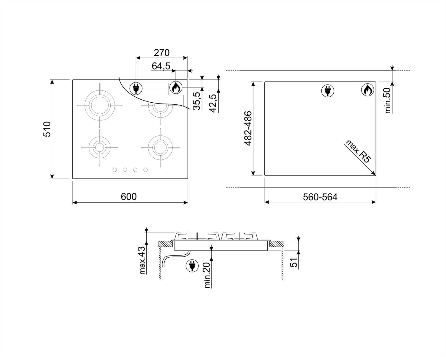 - Стабильность и дизайн даже при температуре до 700 °C: материал варочной поверхности выдерживает высокие температуры, не деформируясь, сохраняя эстетичный вид и функциональность даже при интенсивном использовании.