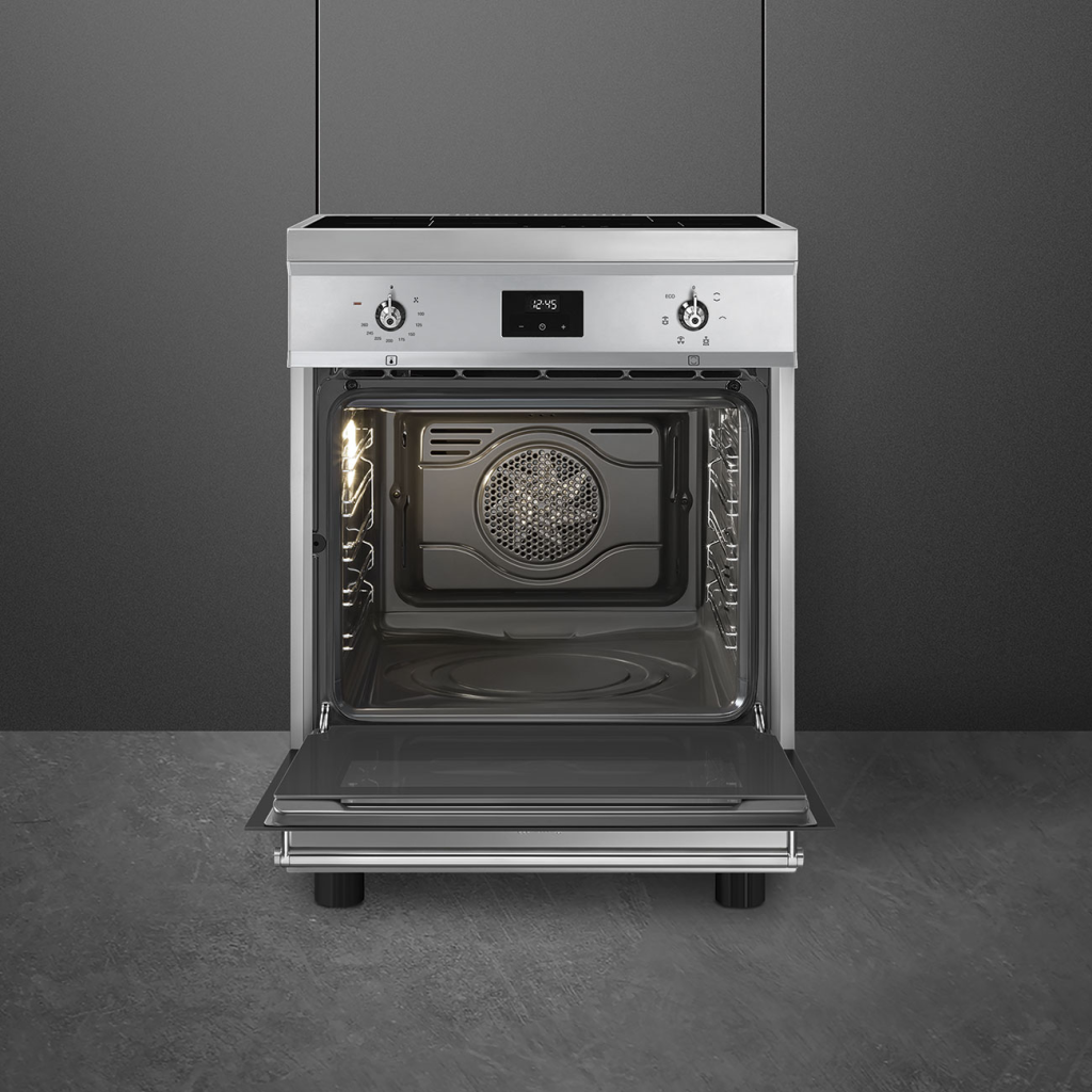 - Духовка имеет конвектор, оснащенный круглым нагревательным элементом, позволяющий готовить с перемешиванием потоков теплого воздуха