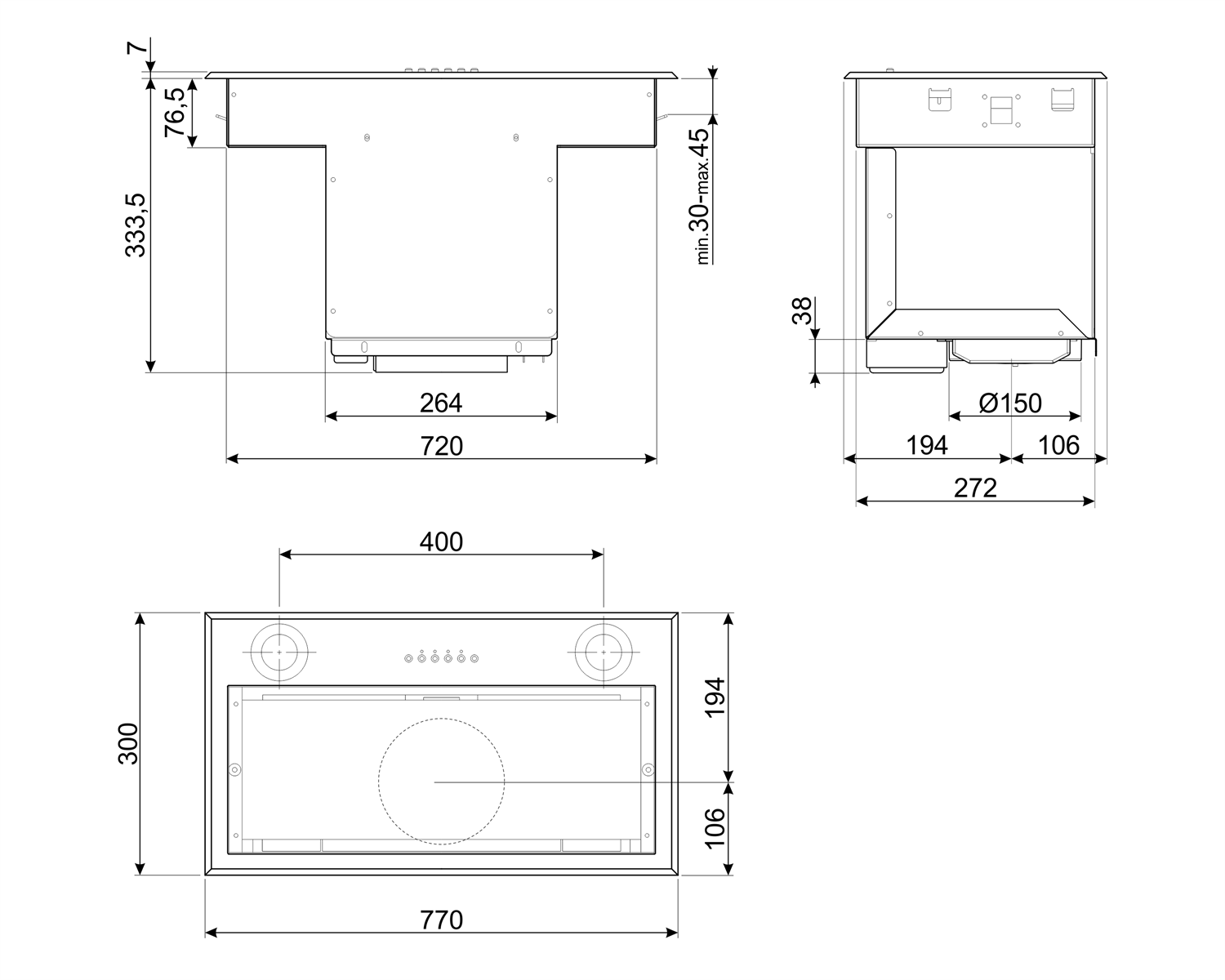 - Оптимизированная вытяжка через периметральную аспирационную систему - Периметральное всасывание