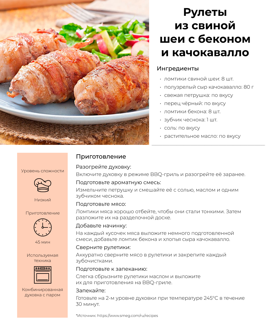 Готовим сочные мясные рулетики с беконом и сыром качокавалло в режиме BBQ-гриль.