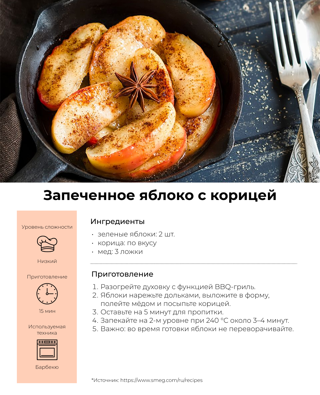 Яблоки с мёдом и корицей, приготовленные в комбинированном духовом шкафу с пароваркой на режиме BBQ-гриля.